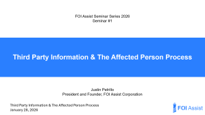 FOI Assist Seminar Series (2026): Registration Link for Seminar #1 2025-12-11 – As an FOI Assist Knowledge Base subscriber, you are invited to register for the first seminar in the 2026 FOI Assist Seminar Series.